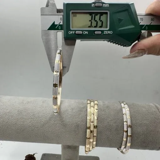 النگو طلا طرح مرسده دو رنگ زنانه و دخترانه کد 1646 یکی از زیباترین النگوهای تراشداری است که می تواند استایل هر خانمی را خاص و جذاب نماید. این النگو باریک با داشتن تراش های بسیار ظریف و متقاران درخشش و جلوه بی نظیری دارد. النگو دو رنگ طلا طرح مرسده به راحتی با سایر زیورآلات مختلف هماهنگ میشود. این ویژگی باعث شده است که بتوانید آنها را با انواع لباسها و سبکهای مختلف استفاده کنید. این اکسسوری زیبا از طلای 18 عیار با کیفیت بالا ساخته شده و دارای طراحی مدرن و منحصر به فردی است.