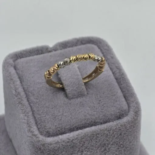 انگشتر مفتول البرنادو تک رج طلا زنانه کد 1208 یکی از انگشترهای شیک و پرفروش می باشد. این انگشتر، طلای 18 عیار از یک رج گوی به هم پیوسته ساخته شده است یکی از دلایل زیبایی این محصول ترکیب رنگ زرد و سفید این گوی ها می باشد. انگشتر آلبرنادو با طراحی خاصی که دارد، هم به دستان شما زیبایی میبخشد و هم به شما امکان میدهد که آن را در طول روز بدون احساس سنگینی یا ناراحتی استفاده کنید.