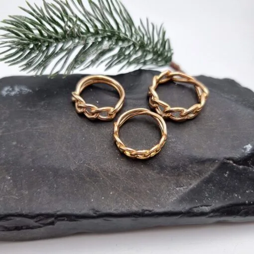 انگشتر طلا طرح کارتیر زنانه کد 1161، یکی از محبوبترین انواع زیورآلات در بین خانمها می باشد. طرح انگشتر کارتیر جدید، شبیه به زنجیر است که باعث شده در عین سادگی، ظاهری بسیار زیبا داشته و با انواع تیپ و استایل افراد ست شود.زیبایی چشمنواز و بادوام بودن از ویژگی های محصولات این برند لوکس است. این محصول از طلای زرد 18 عیار ساخته شده است و به دلیل اینکه جزو راحتترین انگشترها می باشد، میتوانید علاوه بر مهمانی ها به صورت روزمره نیز از آن استفاده کنید.