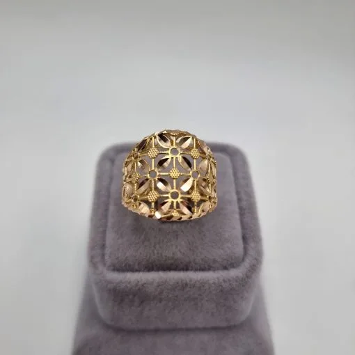 انگشتر فیوژن لوکس طلا زنانه کد 1260 یکی از جواهرات زیبا و چشمگیری است که می توانید آن را در مهمانی ها با لباس شب استفاده نمایید. این انگشتر فوق العاده پرطرفدار طراحی توری شکل دارد و به همین دلیل از لحاظ ظاهری بزرگ بنظرمی رسد.. انگشتر18 عیار فیوژن لوکس، شکل واضحی از گل را به صورت انتزاعی به نمایش می گذارد و بدون نگین می باشد.