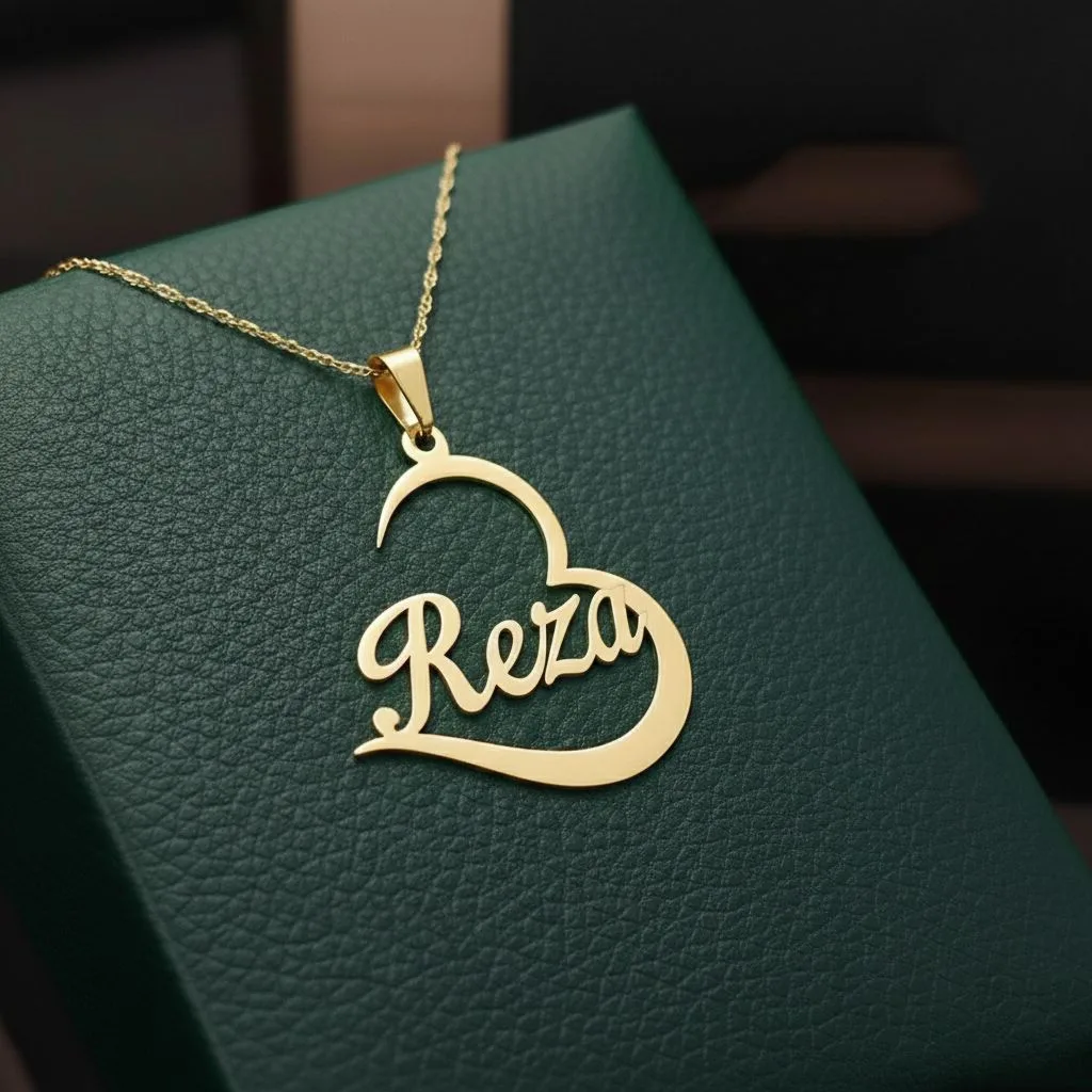 پلاک طلا لیزری اسم رضا انگلیسی و قلب کد 2487 SF