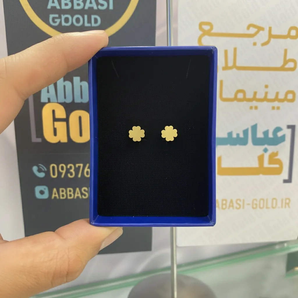 گوشواره طلا میخی لیزری طرح گلبرگ زنانه و دخترانه کد 2271 SF