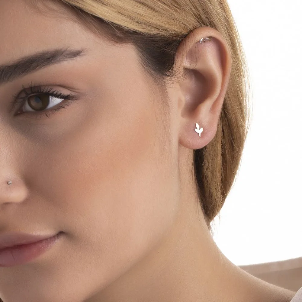 گوشواره لیزری میخی برگ طلا زنانه و دخترانه کد SF1695