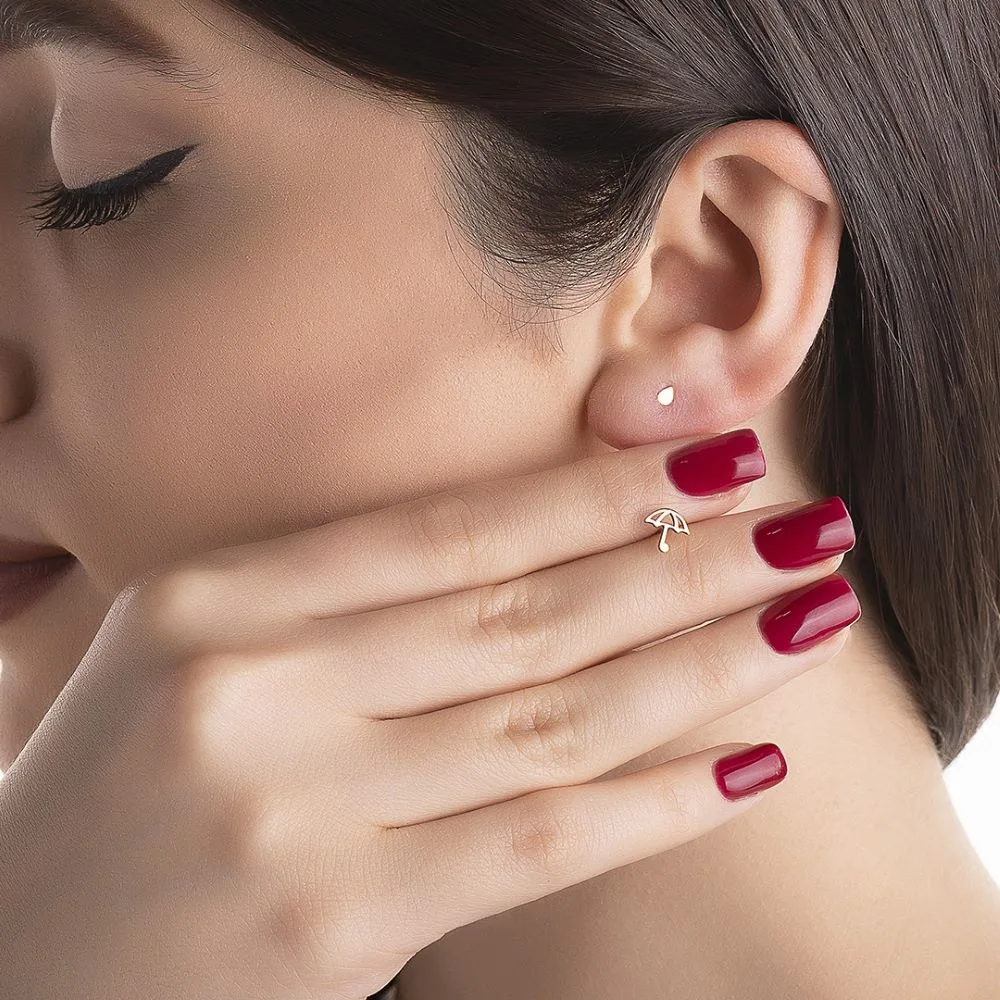 گوشواره لیزری میخی چتر و قطره طلا زنانه و دخترانه کد 1693،گوشوارهای با دو طرح متفاوت ترکیبی خلاقانه و خاص برای کسانیست که به اکسسوریهای مفهومی و متفاوت علاقه دارند.وزن پایین و اجرت ساخت کم، این مدل را به گزینهای اقتصادی و درعینحال خاص تبدیل کرده است. سبک و راحت برای استفادهی روزمره، و قابلستکردن با استایلهای مینیمال یا لایهلایه، بهویژه در روزهای پاییزی و بارانی.