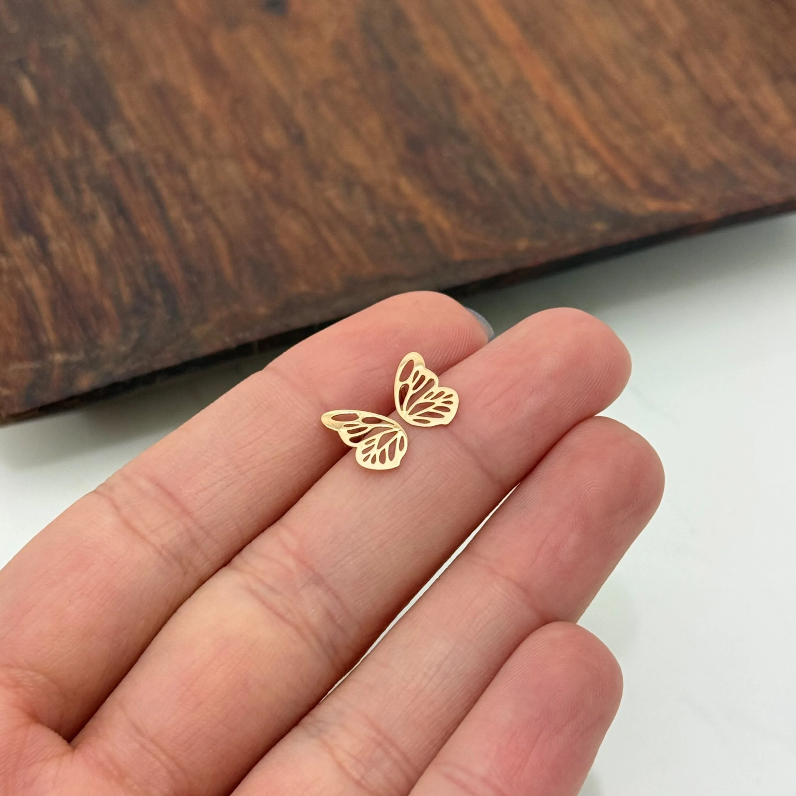 گوشواره میخی لیزری طلا بال پروانه زنانه و دخترانه کد 1598 SF